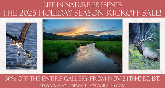 The 2025 holiday season is here, and Life in Nature is celebrating with bells on! From November 24th through midnight of December 1st (Cyber Monday!) enjoy a gallery-wide 30% off! Support small businesses this year and celebrate the season by giving someone you love the gift of nature!
